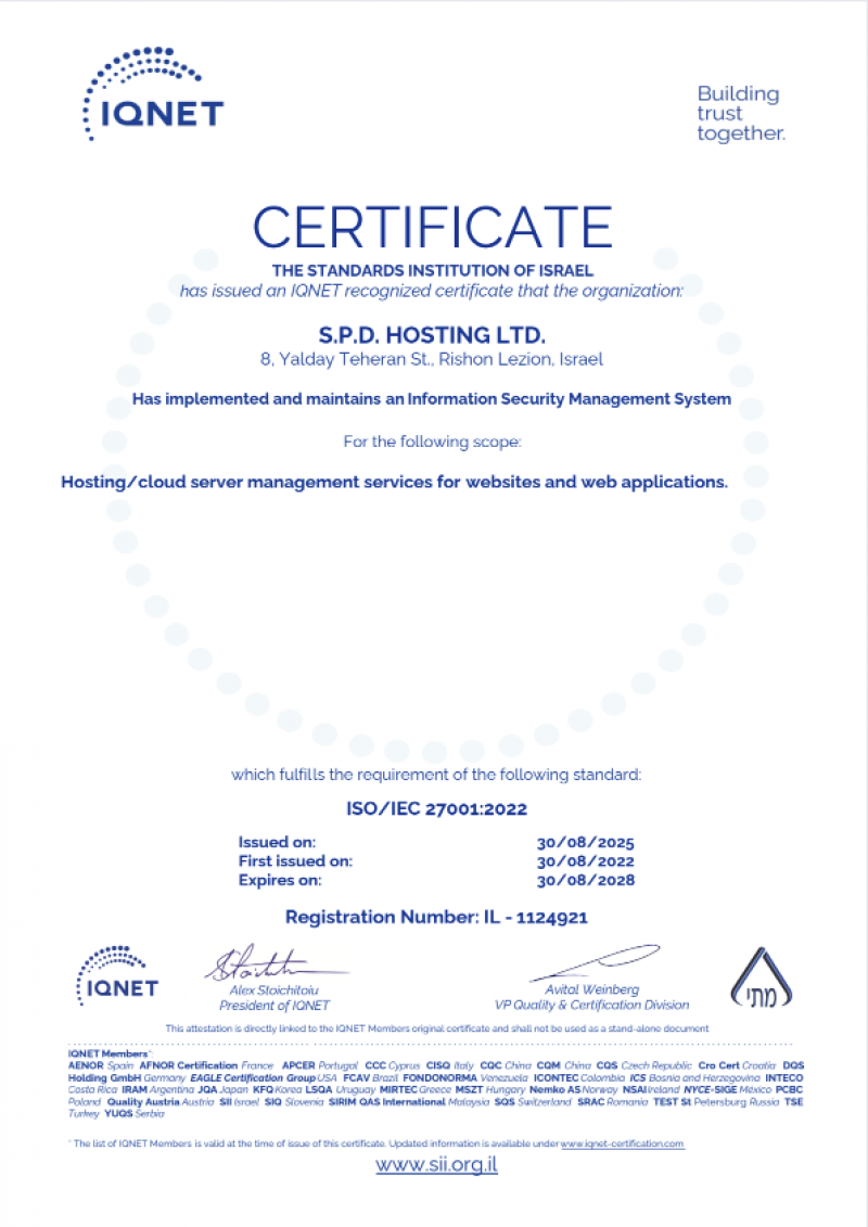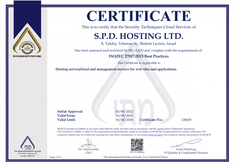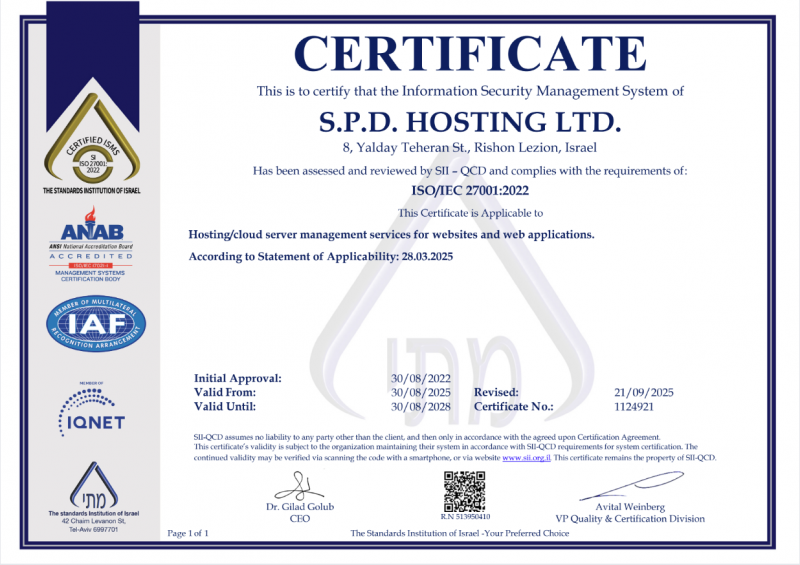 אנחנו שמחים להיות חלק מקבוצה של 13 גופים בלבד שקיבלו את ההסמכה הגבוהה של מערך הסייבר הלאומי "תו החוסן - מתודת שרשרת האספקה של מערך הסייבר הלאומי" ובכך הפכנו להיות החברה הראשונה בתחום איחסון האתרים ומחשוב ענן אשר קיבלה את תו החוסן בדרגת פלטינה A (נכון למועד הפרסום).